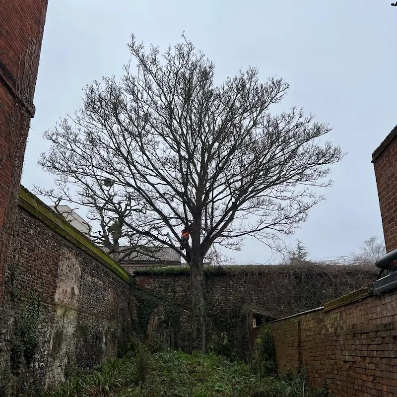 In addition, the surrounding listed buildings required particular care and consideration during the works. Detailed risk assessments and method planning were carried out to ensure that all tree surgery operations were completed safely, with full respect for the historic structures and their surroundings.
